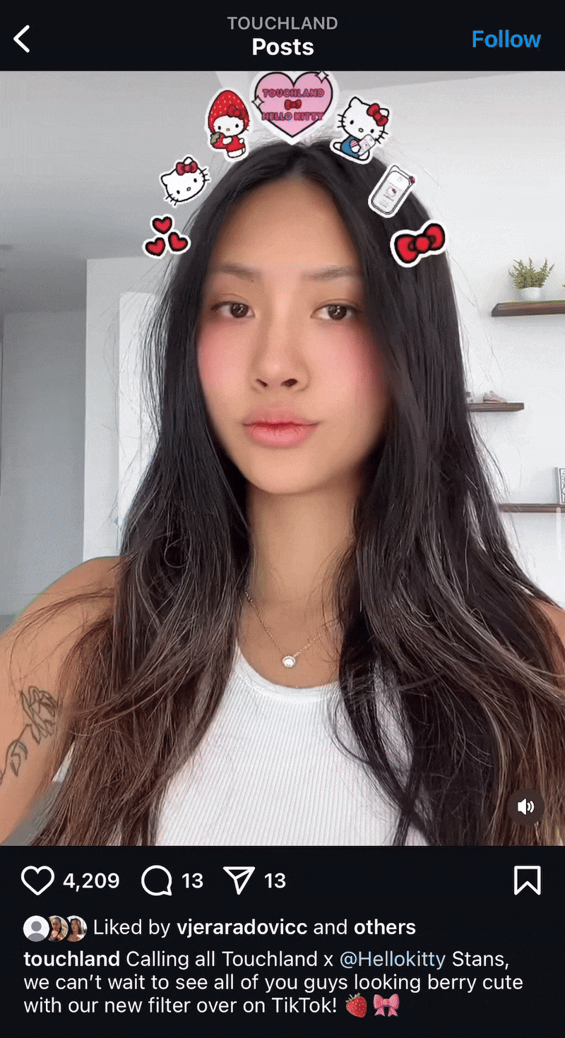 Custom TikTok filter and GIF stickers created for launch of limited-edition Touchland X Hello Kitty Hand Sanitizer Mist.